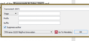Si se quiere citar en formato Peres (2007), y se usa Mendeley como gestor de referencias, tras insertar la cita hay que editarla de este modo (si se usa otros software, como EndNote, por ejemplo, hay que hacer algo similar, pero obviamente con otros menus y otras opciones):